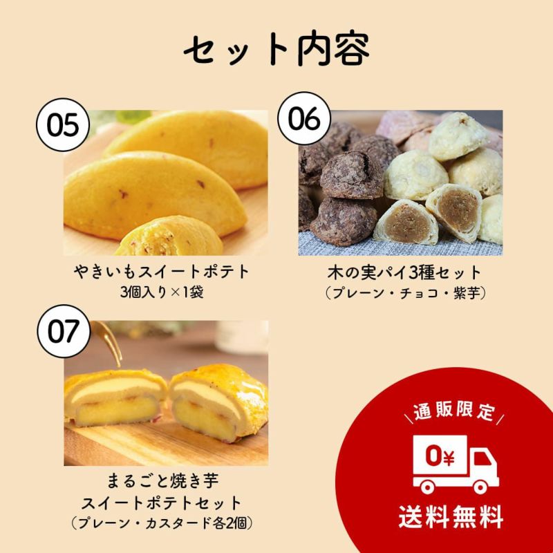 らぽっぽファーム自慢のおいもスイーツをぎゅっと詰め込んだ、食べごたえたっぷりのスペシャルセットが登場! テレビや雑誌で話題の看板商品「ポテトアップルパイ」をはじめ、焼き芋の美味しさをそのまま閉じ込めたスイートポテトや、サクサク食感が楽しい木の実パイ3種、乳酸菌入りでカラダにやさしい“美腸スイーツ”まで、バラエティ豊かなおいもスイーツが勢ぞろい。 家族みんなでシェアしても、一人でじっくり味わっても◎