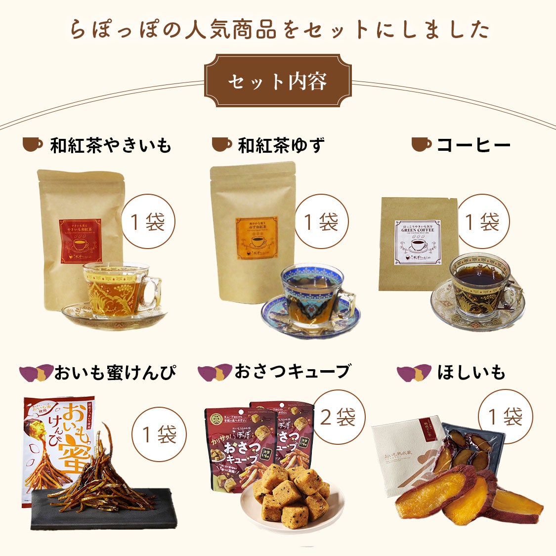 他の画像を見る 【通販限定】らぽっぽ おいもスイーツセレクション ギフト対応可 eギフト 税込価格 ¥ 6,480 税込 さつまいもの多彩な甘みをひと箱に詰めて、通販限定のおいもスイーツセレクション。 濃厚ななめらかプリン、香ばしい焼き菓子、やさしい甘さの干し芋まで、 さつまいもの多様な魅力を一度に味わえる贅沢な詰め合わせです。 詳細を見る お気に入り