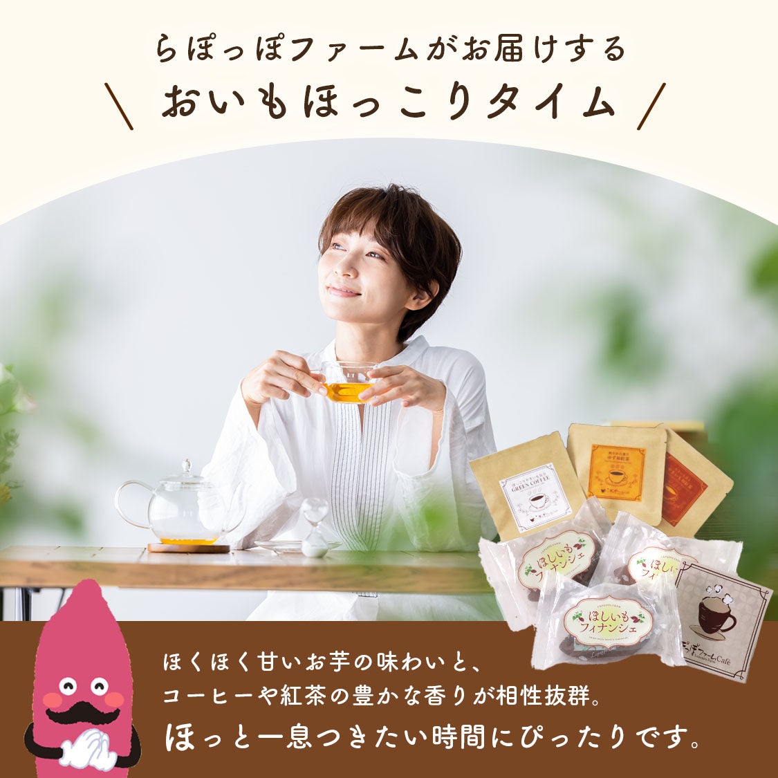 他の画像を見る ほしいもフィナンシェ Tea & Coffee セット NEW ギフト対応可 季節限定 eギフト 税込価格 ¥ 2,000 税込 ほくほく甘いお芋の味わいと、コーヒーや紅茶の豊かな香りが相性抜群。 詳細を見る お気に入り