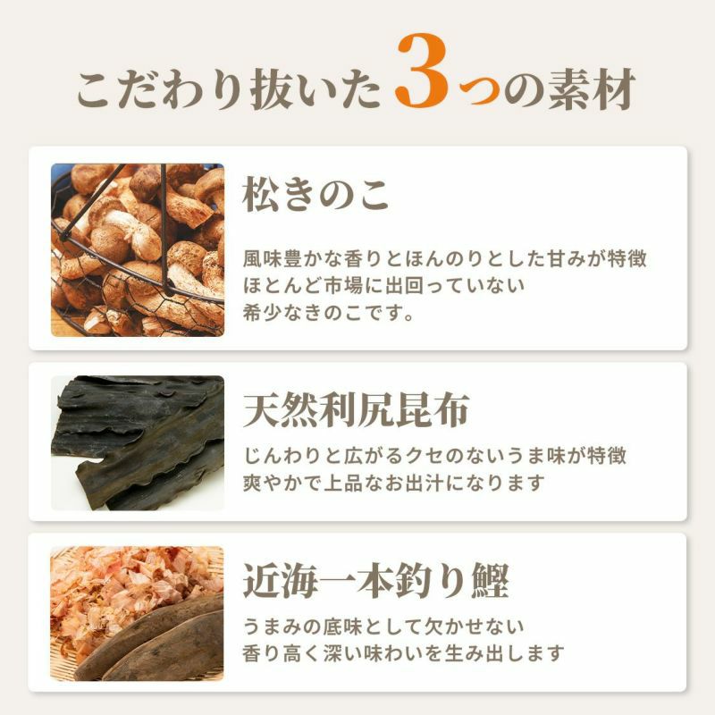 体験型農業テーマパーク「らぽっぽ なめがたファーマーズヴィレッジ」にて、米米CLUBのBONさん、MINAKOさん、MARIさん、米米米オーナー様と共に育んだ、香り・甘み・旨みのバランスが良いあきたこまちです。ふっくら炊き上げて、一粒一粒味わってお召し上がりください。 「松きの子さん」は、広島県世羅町で20年以上かけて開発された希少な“松きのこ”を使用。松茸のような香りと食感に加え、β-グルカンや葉酸など栄養も豊富な万能だしです。