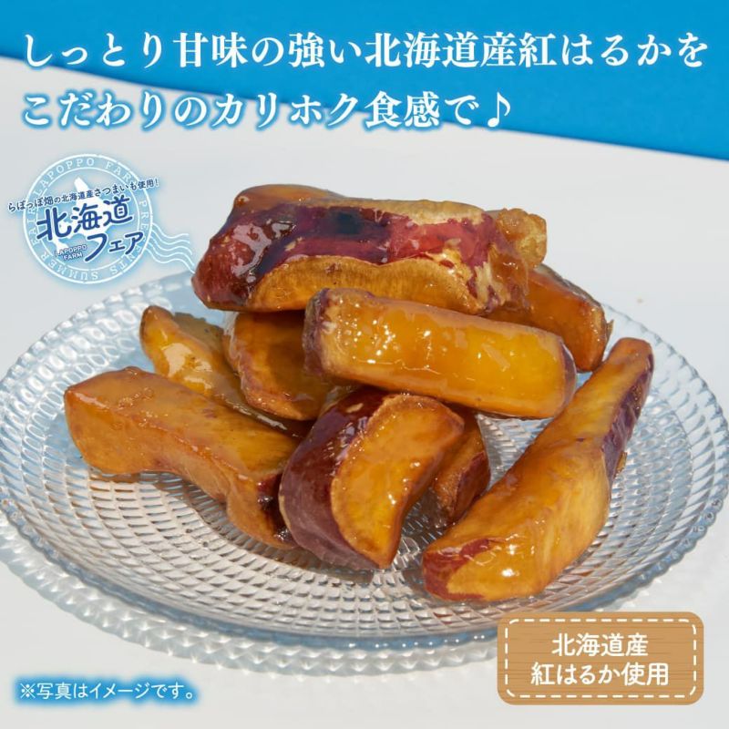 外は「カリッ」中は「ホクッ」とやみつき食感の大学いも。 しっとり甘味の強い北海道産紅はるかを食べやすいスティック状にカットし、独自のこだわり製法でたっぷりの飴を絡めて仕上げました。 暑い夏にはひんやリアイス感覚でお召し上がりいただくのがおすすめです!
