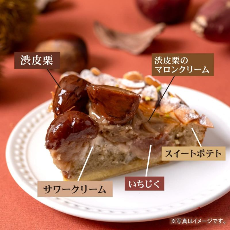 国産さつまいものスイートポテトにジューシーないちじくを盛り付け焼き上げました。マロンクリームをしぼり渋皮栗をごろごろのせた、秋の味覚をたっぷり詰め込んだ限定タルトです。