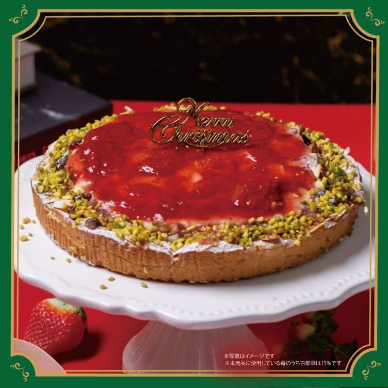 ホワイトチョコ入りの抹茶スイートポテトに2種のいちごを合わせました。仕上げにピスタチオをあしらったクリスマスカラーの豪華なタルトです!