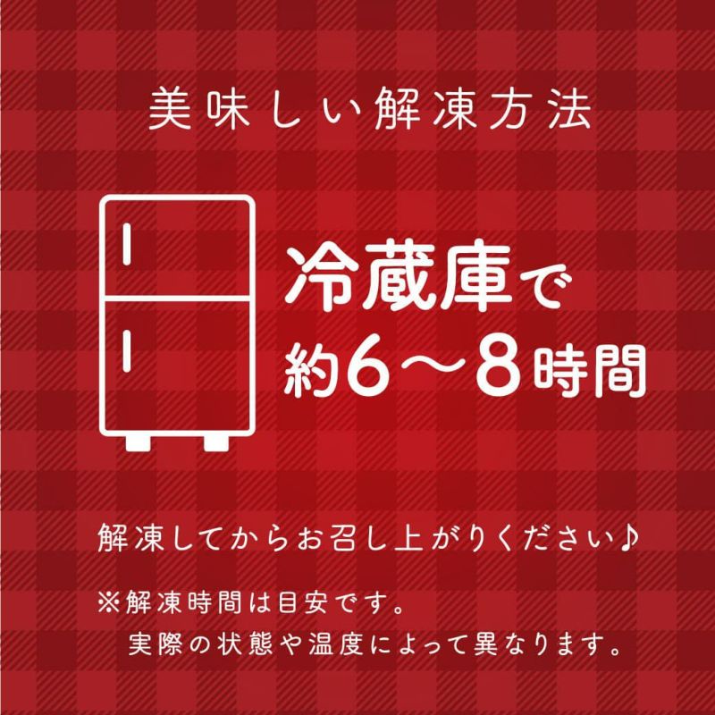 10℃以下の冷蔵庫で約6~8時間置いて解凍してからお召し上がりください。