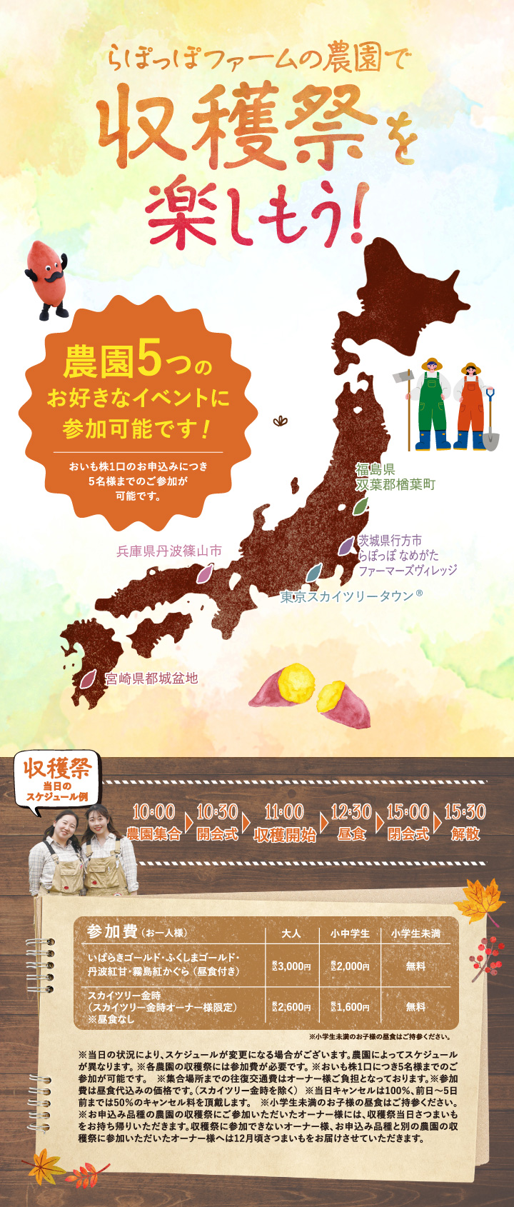 他の画像を見る 【11月2日開催!】 おいも株オーナー制度2025収穫祭【いばらきゴールド】◆大人3000円・子ども2000円◆ おいも株 税込価格 ¥ 0 税込 販売を終了しました。 詳細を見る お気に入り登録