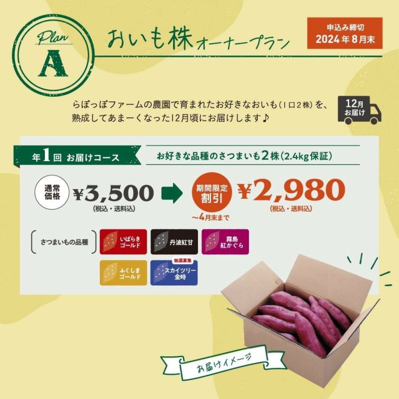 おいも株権利書お受取日より、収穫したさつまいものお届けまでとなります。