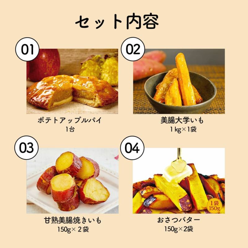 らぽっぽファーム自慢のおいもスイーツをぎゅっと詰め込んだ、食べごたえたっぷりのスペシャルセットが登場! テレビや雑誌で話題の看板商品「ポテトアップルパイ」をはじめ、焼き芋の美味しさをそのまま閉じ込めたスイートポテトや、サクサク食感が楽しい木の実パイ3種、乳酸菌入りでカラダにやさしい“美腸スイーツ”まで、バラエティ豊かなおいもスイーツが勢ぞろい。 家族みんなでシェアしても、一人でじっくり味わっても◎